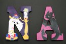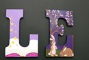 11. Describe your process for completing a work of  art.  When someone asks me to paint letters for them, I sketch out the  letters and decide on a color scheme and patterns for each letter.   During the summers, I try to work on the letters in large chunks of  time, often finishing in one day.  During the school year, my projects  are a bit more disjointed, working on them when I can find an hour or  two.  Though I sketch and plan before starting, my plans often change as  I'm working.
